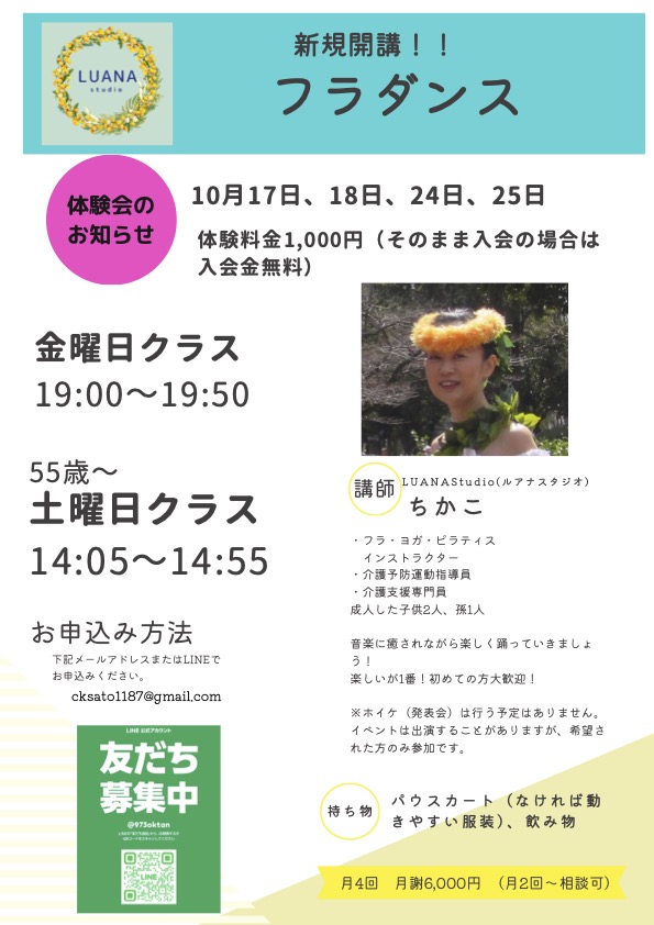 LUANA studioはフラダンス、ヨガ、ピラティスを受けられる小さなスタジオです。